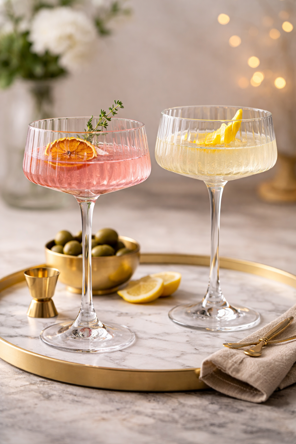 Two crystal champagne saucers featuring our stunning Mirage design. These glasses are also well suited for cocktails or serving ice-cream and small appetisers. Crafted from premium lead free crystal. presented in a beautiful gift box.