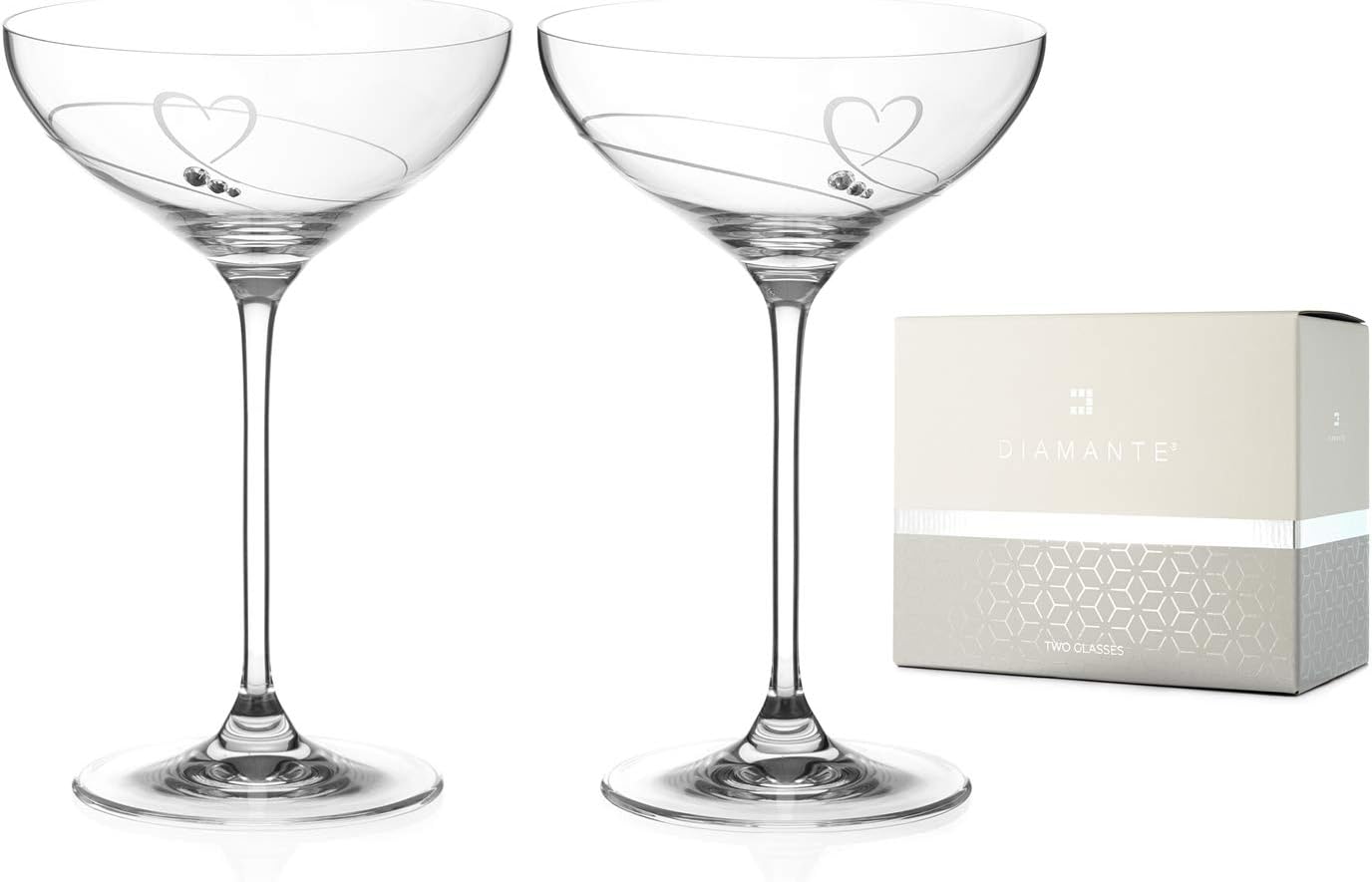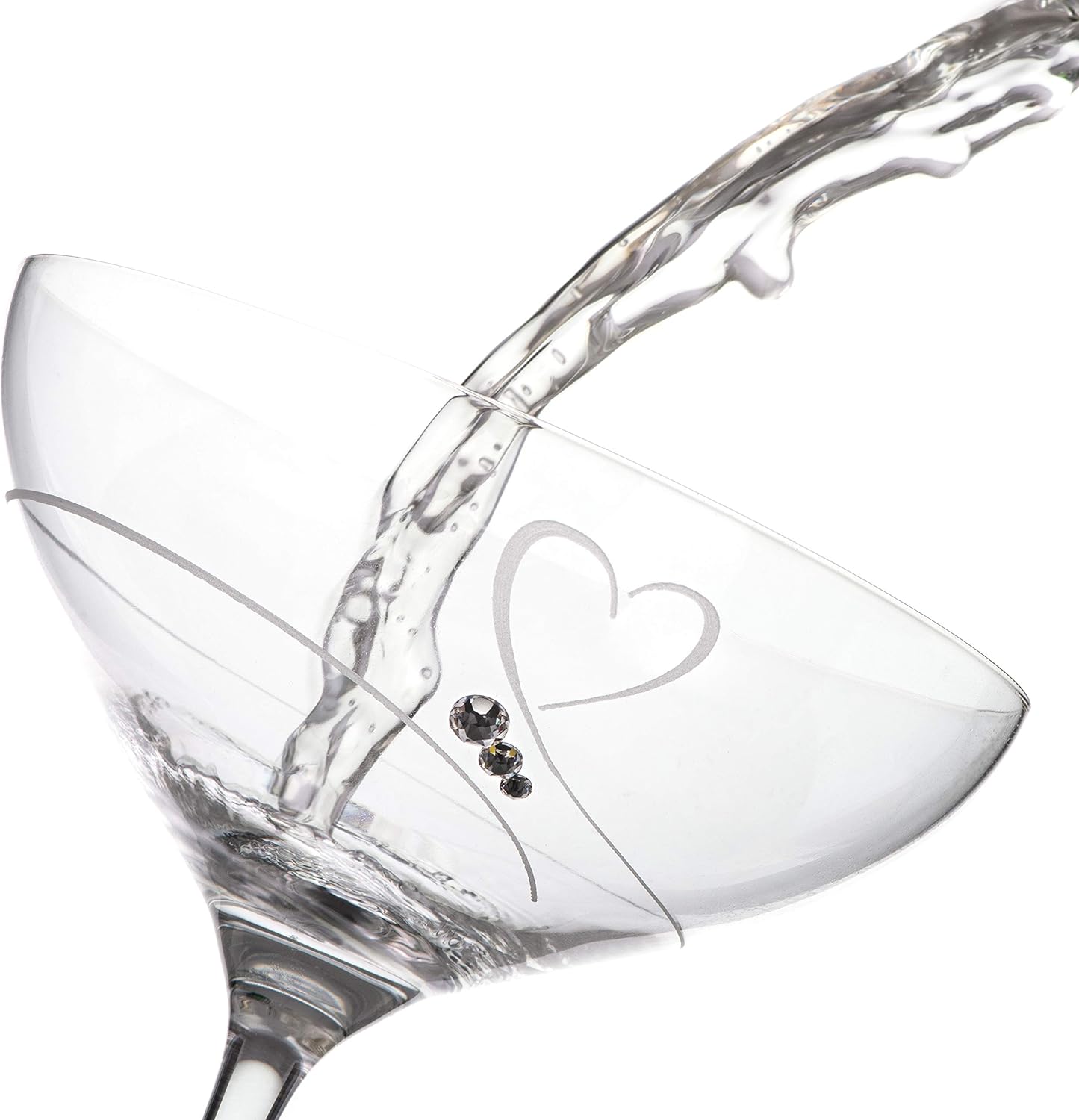 Our glass is made from premium, ultra clear crystal with a very high refractive index, in other words the glasses shimmer, unlike normal glass. As a result, these hearts champagne saucers look and feel very elegant and premium. By no means do you have to be an expert to recognise the difference! Once we have the underlying shape, our craftsmen and women apply various exclusive handmade finishes and designs. these range from simple cuts to colours and paints to Swarovski® crystals. Finally, we safely and securely package the crystal into premium boxes, which, thanks to their elegant designs also make wonderful gifts.